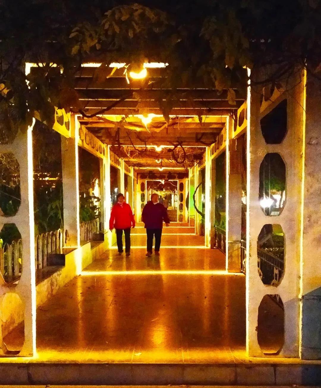 灯光由远及近,一环套一环,如同穿梭在时空隧道中。自从滨河公园廊架上安装了窗台灯,这片廊架成了附近市民休闲散步的首选。如这般美好的灯光秀,在未来的保定,将会大量呈现。