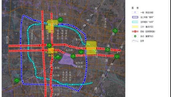 在总体布局方面,《规划》提出整体构建“西山东水、一城三星、六河入淀、雄保共生”的区域中心城市照明格局;打造“一环、双轴、两网、四廊、多片、多点”主城区城市照明总体结构;明确了暗夜保护区、迎宾夜景观轴线、夜景观网络、过境交通景观廊道、特色照明片区、夜景观节点、灯光文化活动场所以及夜景旅游线路的布局。