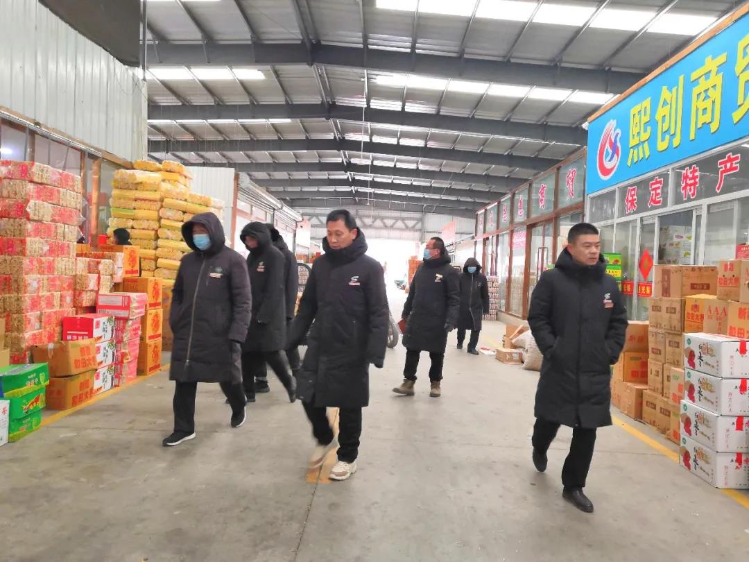 12月29日,根据工作部署,保定新发地联农批发市场开展节前安全检查活动,常务副总高占良带队,行政副总胡夕朝,办公室主任赵金波,北区经理王宝军、副经理魏巍,南区经理阴会坡、副经理王涵,督查部部长赵金水等领导对市场各区进行了全方位地毯式安全检查,督促做好节前安全生产工作、突发情况应急预案及冬季极端天气的应对措施等,确保市场安全规范运营,确保保定人民过年期间“菜篮子”的安全稳定供应。