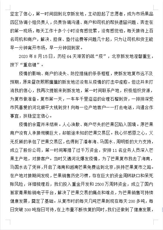 郑得厚总经理荣获北京新发地2020年“抗疫优秀商户”荣誉称号